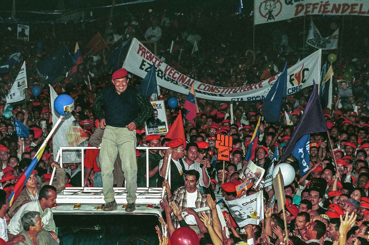 Chávez at a campaign rally in August 1998, months before his landslide victory. PHOTOGRAPHER: TIMOTHY FADEK