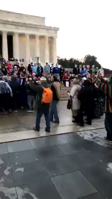 Every year, my school attends the March for Life in D.C. and afterward tours the city. Our chaperones and teachers told us to be at the Lincoln Memorial at 5:30 to be ready for the buses to pick us up. 5:30 came around and we were all gathered at the Memorial. As we are an all-male school that loves to get hyped up…and as we have done for years prior, we decided to do some cheers to pass time.