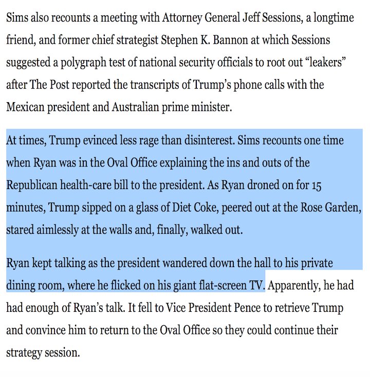 During a GOP health-care bill strategy session, Trump sipped on a Diet Coke, stared aimlessly out at the Rose Garden and, finally, walked out. Ryan kept talking as Trump wandered down the hall to his private dining room and flicked on his giant TV. t.co