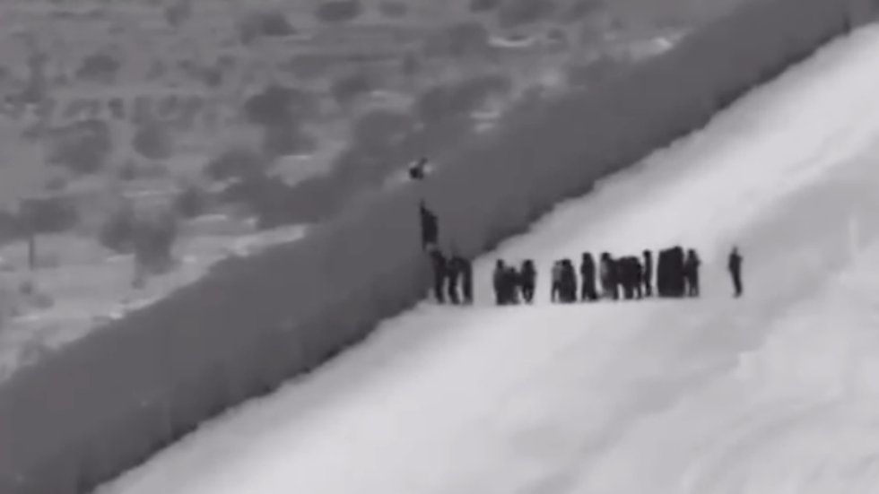 Border patrol shares video showing migrants climbing over border wall with ladder hill.cm