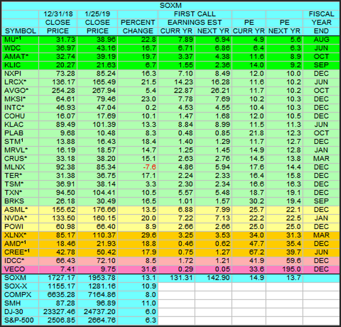 This is the weekly look at the SOXM stocks in terms of Current and Next Year earnings estimates and PE values sorted by Next Year PE.