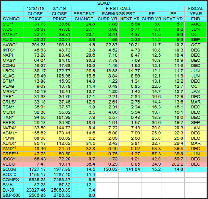 This is the weekly look at the SOXM stocks in terms of Current and Next Year earnings and PE values sorted by Next Year PE.