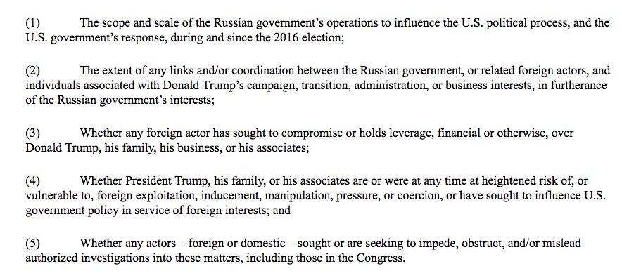 Schiff: The House Intel Committee's Russia investigation "will focus principally on five interconnected lines of inquiry, beginning with these incomplete or unexamined investigative threads:"