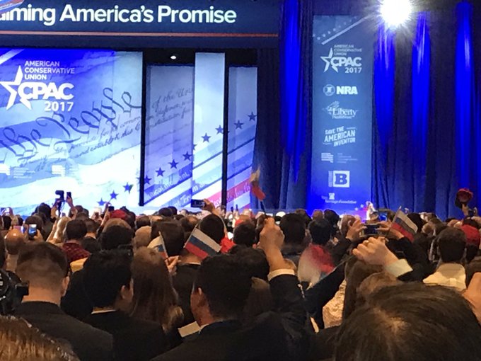 Respond to of 1573994 CPAC Crowd Duped Into Waving Russian Flags During Trump SpeechWho says they were duped? Some of the SI Trumphumpers admit they love Russia more than America. “It’s fun to have a joke sometimes in a very serious situation,” says trickster Jason Charter. By Mary Papenfuss A pair of progressive moles with a sense of humor were apparently responsible for a grand — although short-lived — prank at the Conservative Political Action Conference that had members proudly waving tiny banners emblazoned with the name “Trump” that were actually Russian flags. The pranksters passed 1,000 red-white-and-blue Russian flags before Donald Trump ’s speech at the conservative confab in Maryland on Friday. Audience members scooped them up and waved them enthusiastically as Trump railed against the media . He also tweeted a series of attacks earlier against the FBI , accusing it of leaking information that the White House had pressured the bureau to publicly dispute reports of contact between Trump’s aides and Russia. The flag tricksters identified themselves as Jason Charter and Ryan Clayton with the self-described “resistance” group Americans Take Action . They purchased tickets to the conference shortly before Trump was to take the podium and handed out the flags, Charter told The Huffington Post. Charter, 22, said that the gag was intended to mock Trump’s admiration of Russian President Vladimir Putin and highlight concerns about Trump administration ties to Russia. “Donald Trump is selling out the U.S.,” he said. The prank went surprisingly smoothly, he added. “I asked people if they wanted a Trump flag and they took it,” Charter said. “There were only about five people who said, ‘Wait a minute, this is the Russian flag.’” Talking Points Memo ?@TPM Activists prank CPAC attendees into waving Russian flags at Trump t.co Feb 24, 2017 Politico’s Tim Alberta tweeted that the crowd “gave no thought” to the Russian flag. They just saw “red, white & blue” with Trump printed on it. Tim Alberta ?@TimAlberta Replying to @TimAlberta They saw red, white & blue - with "TRUMP" stamped across it - and started to wave them. Gave no thought to Russian flag, they all said. 2/2 10:34 AM - Feb 24, 2017 Charter said that pranks can be “fun and still effective in shedding light on a serious situation.” He said Americans Take Action has several other events planned. “I, of course, can’t go into details, but we’re not stopping until Donald Trump is impeached.” Clayton, 36, using a mock Russian accent in an interview with Atlantic, called the prank a “true-flag” operation. “It show how Trump and Russia are so connected, they like peas in pod,” he said. LiNCOLN PARK@linc0lnpark Trump's #CPAC Speech: An abject nightmare come-to-life where Americans proudly wave Russian flags 1 0:30 AM - Feb 24, 2017 Someone handed out Trump Russian flags on the #CPAC2017 floor before Trump’s speech pic.twitter.com/uf1ADMt6ZL — Taylor Lorenz (@TaylorLorenz) February 24, 2017 Mikel Jollett ?@Mikel_Jollett This is not a joke: Trump's CPAC flags look EXACTLY like little Russian flags. Coincidence? 9:51 AM - Feb 24, 2017 Terry Kalb @teka21bat Do these people even realize they are cheering another country? Make America Russian? t.co 11:30 AM - Feb 24, 2017 Tim Alberta ?@TimAlberta A section of people in the back of #CPAC2017 waving Russian flags -- a staffer just came and demanded they all be handed over. 9:27 AM - Feb 24, 2017 .............huffingtonpost.com