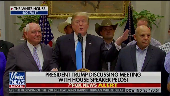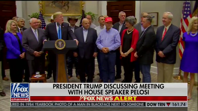 Recalling a meeting with House Speaker Nancy Pelosi, President Trump called upon several of his staffers to back up how he carried himself during the interaction.