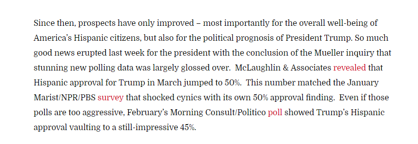 "Trump beat Hillary handily in 2016 while *only* getting 8% of the black vote and 29% of the Hispanic vote." -- HE IS NOW AT 16% AMONG BLACKS AND 45-50% AMONG HISPANICS.