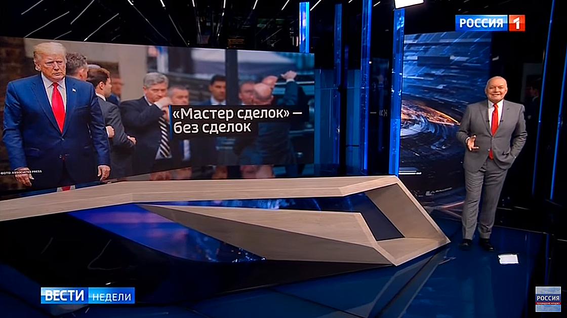 #Russia’s state TV describes Trump as a self-proclaimed master of the deal, with no deals to speak of. “You will laugh, but Trump doesn’t have a single ratified deal under his belt. He's only destroying existing deals & agreements,” says top Kremlin propagandist Dmitry Kiselyov.