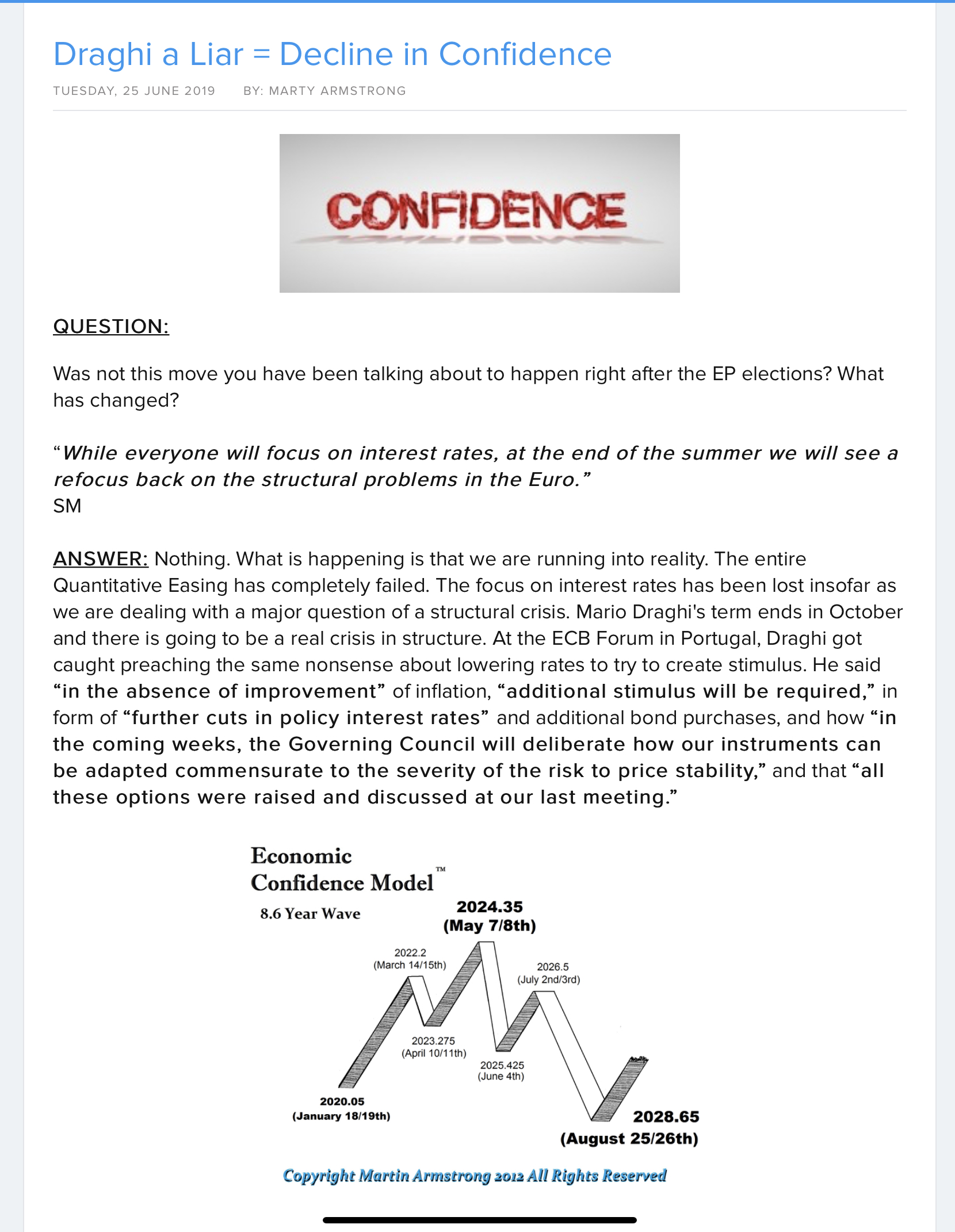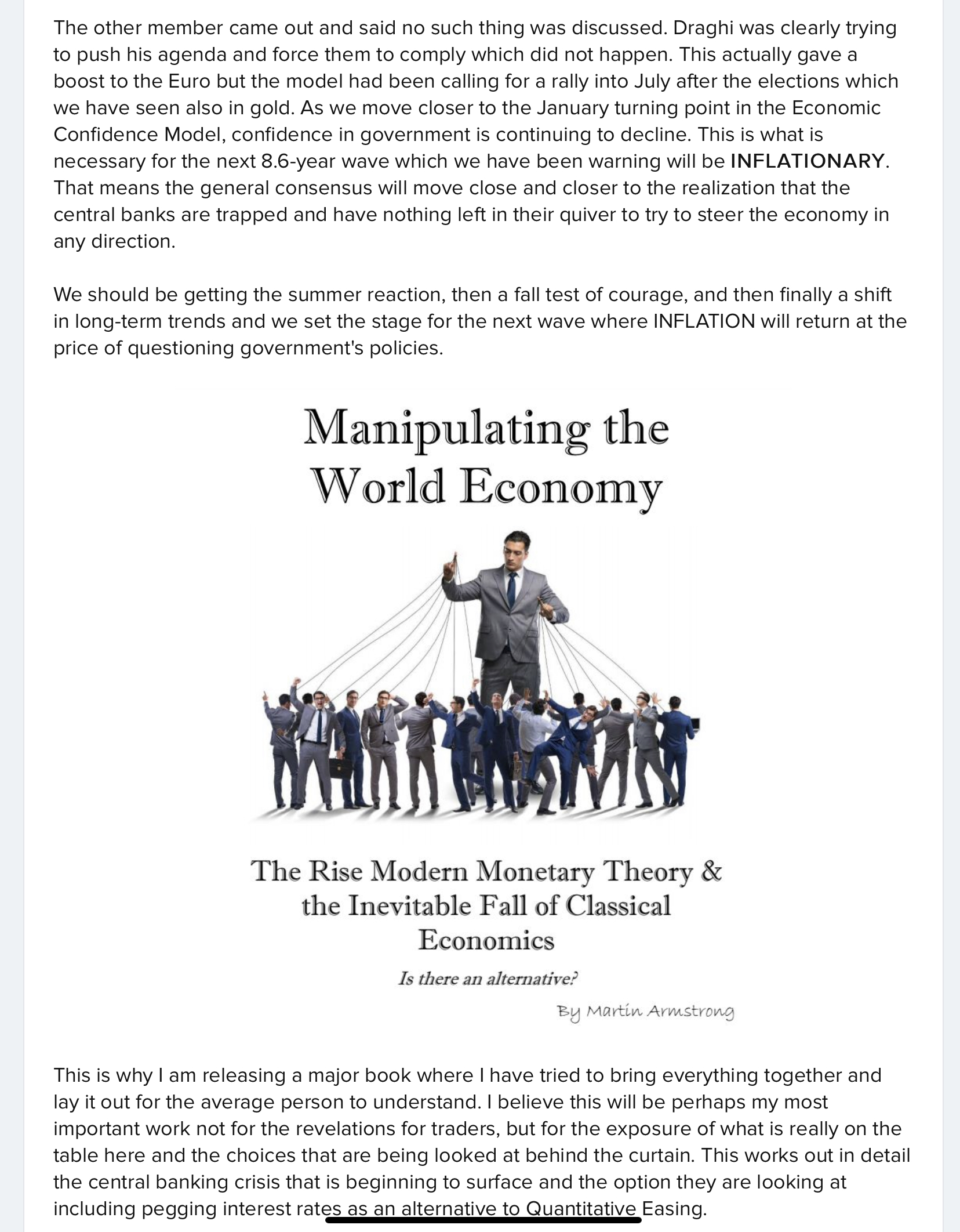 To: carranza2 who wrote (149391 ) 6/26/2019 4:36:25 PM From: TobagoJack Read Replies (1) | Respond to of 218142 By the “Fiat Money Inflation in France” script the masses are supposed to gravitate towards strange new ways of speculation as the disease progressively encompasses all I guess crypto coins might qualify, especially if gold qualifies.zerohedge.com Bitcoin Soars Most Since 2017 As Dollar Drops, Bond Yields Pop Will Powell or Trump or Xi or Putin or Rouhani be 'Leeroy Johnson'? In an effort not to bury the lead, we note that cryptocurrency's rebirth accelerated dramatically today with Bitcoin spiking above $13,500 intraday (up over $2000 in the last 24 hours - Bitcoin's biggest daily dollar rise since Dec 2017 )... Tracking the 2017 trajectory very well...In the 8 days since Facebook unveiled Libra, Bitcoin is up almost 50% Helped by the extreme dovishness of The ECB, The Fed, and various Fed-Speakers since. However, perhaps it is as simple as this chart...Bitcoin is protection from the idiocy of policymakers... rather like gold... Gold’s climb to a six-year high may reflect its status as “a positive yielding asset” relative to much of the world’s debt, according to Peter Boockvar, chief investment officer at Bleakley Advisory Group LLC. As Tom Luongo noted earlier , this run up towards the end of this month into the end of Q2 may be morphing quickly into a FOMO rally that could see a blow-off top in the near future.Markets that go vertical without really pausing to take a breather will always correct down. Hard. When that happens given the expansion of Bitcoin’s dominance of the crypto market by market cap percentage in the past few weeks, I would expect to see some strong rotation into both cash and alt coins just clearing major technical hurdles on any correction.And just so we’re clear as to what’s happening here. The mother of all safe haven trades is emerging. Trade Wars, Near Hot Ones, tariffs, sanctions, popular uprisings and political instability are all on the table. While we’re all focused on whatever short-term idiocy comes out of Donald Trump’s mouth to secure his control over the Overton Window, we should be asking ourselves why the ECB is going looking at even more negative rates, LIBOR has inverted alongside Eurodollar and the U.S. Treasury market and stocks are at all-time highs. The markets aren’t irrational. Our perceptions of what is driving this behavior is. Safe haven assets change with the times. And when you step back from the insanity of the fiscal and political situation in the U.S. and Europe , the fall-out from their instability on emerging markets and the potential for major shifts in the geopolitical game board does it really seem all that odd that a simple electronic proxy for gold with thin supply, high trust and low holding risk would become a darling of the risk averse? I don’t. Read more here... * * * Chinese stocks dipped at the open, scrambled back and then did nothing for the rest of the day... European stocks ended lower - despite the Mnuchin pop... US equities were juiced overnight by Mnuchin's trade deal comments then gave it all back as humans realized the machines had misunderstood his grammar - "deal WAS 90% done" is different from "deal IS 90% done." Trannies and Nasdaq outperformed while Small Caps, Dow, and S&P were weakest...another weak close... Today's strength was a rebound in cyclicals as recent outperformance of defensives was dumped... VIX extended its recent gains, decoupling from stocks... Treasury yields spiked notably higher today (front-end underperforming)... 10Y yields worked their way back up to a key resistance level from FOMC day...with a deja vu nature to the move... The Dollar dipped today but remains in a tight range for the 3rd day since the FOMC day dump... Yuan spiked on Mnuchin's trade deal comments then gave it all back... Crude is the week's winner for now (thanks to a massive crude draw) with silver lagging... Gold dropped most in 3 weeks today... back to 2-day lows... While Gold traded down in USD today, in Canadian Loonies, gold is at a record high... And in case you wondered, as Zimbabwe goes full hyper-inflate-tard again by banning foreign currency withdrawals and abandoning the USDollar, gold in RTGS$ (ZimDollars) is exploding... Just how it is supposed to. Finally, the following are the dates of the last all-time high for various assets ( h/t bullmarkets.co )... Nikkei - 1989 Oil - 2008 Gold - 2011 Silver - 2011 Corn - 2012 Bitcoin - Dec 2017 DAX - Jan 2018 Russell 2K - Aug 2018 NASDAQ 100 - Apr 2019Buy-And-Hold?
