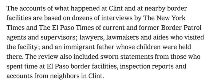 We are confident in the accuracy of our reporting on the U.S. Border Patrol's detention centers. Here's how we reported today's front-page article on the squalid conditions at the migrant detention center in Clint, Texas. Read the story here: t.co
