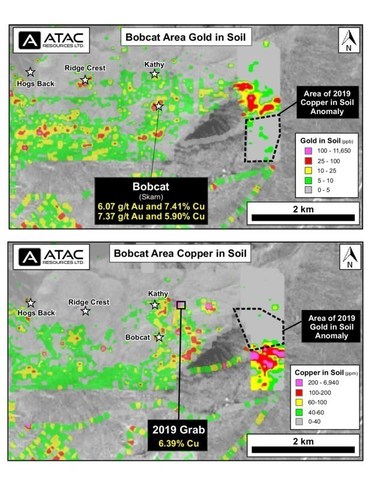 To: LoneClone who wrote (2421 ) 7/16/2019 10:45:26 AM From: LoneClone Read Replies (1) | Respond to of 3063 ATAC Expands Gold-Copper Target Area at Rau Project and Commences Diamond Drilling newswire.ca ATAC Resources Ltd. Jul 16, 2019, 07:30 ET VANCOUVER, July 16, 2019 /CNW/ - ATAC Resources Ltd. (TSX-V:ATC) ("ATAC" or the "Company") announces initial exploration results from the Rau Project, located at the western end of the Company's Rackla Gold Property, Yukon. Bobcat Area Gold and Copper Geochem July 2019 (Fig. 2) (CNW Group/ATAC Resources Ltd.) Exploration at Rau in 2019 is focused on the eastern side of the 660 km2 project in proximity to the Rackla Pluton. The program is designed to follow up on gold, copper, silver and tin anomalies identified in 2018. Work completed to date includes prospecting, soil sampling, geologic mapping, rotary air blast (RAB) drilling and ground based induced-polarization and magnetometer geophysical surveying. Initial hand-pitting and prospecting near a strongly anomalous (6,940 ppm Cu) copper-in-soil location returned a sample of oxidized polylithic fault breccia containing 6.39% copper . Further prospecting 300 m west returned a sheared siltstone cut by quartz veins containing 643 g/t silver . Both samples are located proximal to the intersection of two untested faults — defined on surface as prominent linear features — likely tapping mineralizing fluids emanating off of the nearby Rackla Pluton. Fig. 1 – Rau Phase I Exploration Update: c212.net This area of new mineralization is located approximately 800 m north of the Bobcat gold-copper skarn target, where recent exploration returned numerous multi-gram gold and multi-percent copper grab samples, including 6.07 g/t gold with 7.41% copper and 7.37 g/t gold with 5.90% copper. Diamond drilling has recently commenced at Bobcat to test for the bedrock source of this mineralization, as well as to obtain stratigraphic and structural information to guide further targeting. "Results from the area proximal to the Rackla Pluton continue to expand the mineral potential across an emerging, regional-scale polymetallic district," states Graham Downs, President and CEO of ATAC. "Mineralization styles vary throughout the Rau project, and demonstrate the potential for not just high-grade gold discoveries, but an entire suite of strategic metals. We're currently mobilizing a diamond drill to test priority anomalies and systematically improve understanding of the underlying geology, which will be combined with additional geophysical and surficial data to further refine the exploration model for the district." A soil grid completed late in 2018 east of Bobcat identified a 1.2 km x 1 km silver, lead and tin soil anomaly that remains open to the east. The line farthest east on the 2018 grid contained a sample assaying 14.55 g/t silver in soil (see News release Jan 16, 2019). The grid was extended in early 2019 and identified an encouraging new 900 m x 400 m gold-in-soil anomaly that overlays a parallel 700 m x 500 m copper-in-soil anomaly . This anomaly demonstrates the continued potential for intrusion-related discoveries in the district. Fig. 2 – Bobcat Area Gold-Copper in Soil: c212.net In addition, early prospecting 4.5 km north of Bobcat, and south of the Blue Lite and Spotlight skarn anomalies, has identified large quartz boulders mineralized with course grained bismuthinite and pyrite containing 2.87 g/t gold . This target is located on the southern margin of a second interpreted buried intrusion defined through review of geophysical datasets.QA/QC Samples were forwarded to ALS Minerals in Whitehorse and North Vancouver where they were fine crushed before a 250 gram split was pulverized to better than 85% passing 75 microns. Pulps were then analyzed at ALS Minerals in North Vancouver where gold determinations were carried out. Rock sample gold analyses were by the Au-AA25 procedure that involves fire assay preparation using a 30 gram charge with an atomic absorption spectroscopy finish. Initial multi element data for 48 elements was determined by the ME-MS61 procedure that involves a four acid digestion followed by inductively coupled plasma mass spectrometry and inductively coupled plasma atomic emission spectroscopy. Over limit values for silver and copper are determined by the Ag/Cu method that utilizes a four acid digestion followed by an atomic absorption spectroscopy finish. All prospecting grab samples reported in this release represent significant results only. Low or below detection values for gold, copper and silver were encountered in unreported grab samples. The technical information in this news release has been approved by Julia Lane, P.Geo., Vice President of Exploration for ATAC and a qualified person for the purposes of National Instrument 43-101.About ATAC ATAC is a Yukon-based exploration company focused on developing Canada's only Carlin-type gold district and intrusion-related polymetallic targets at the Rackla Gold Property. Work on the ~1,700 km2 property has resulted the Osiris Project Inferred Mineral Resource of 1,685,000 oz of gold at an average grade of 4.23 g/t (in 12.4 Mt), a positive Preliminary Economic Assessment for the Tiger Gold Deposit, and numerous early-stage gold and base metal discoveries. ATAC is well-financed with approximately $13 million in working capital. On behalf of Management and the Board of Directors of ATAC Resources Ltd. Graham Downs, President and CEO NEITHER THE TSX VENTURE EXCHANGE NOR ITS REGULATION SERVICES PROVIDER (AS THAT TERM IS DEFINED IN THE POLICIES OF THE TSX VENTURE EXCHANGE) ACCEPTS RESPONSIBILITY FOR THE ADEQUACY OR ACCURACY OF THIS NEWS RELEASE. SOURCE ATAC Resources Ltd. For further information: Matthew Keevil, VP Corporate Affairs, ATAC Resources Ltd., T: 604-687-2522 ext. 260, mkeevil@atacresources.com