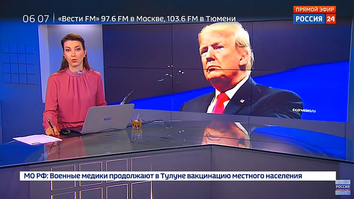 #Russia's state TV: "President Trump says the U.S. has no reason not to get along with Russia, condemns the Democrats."