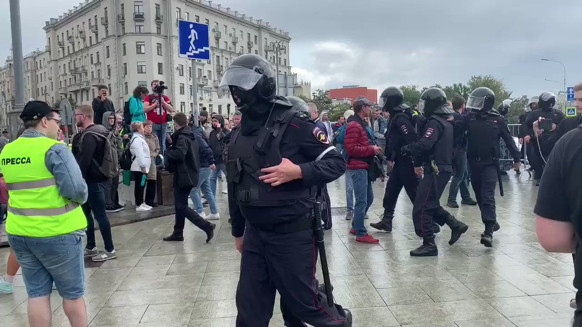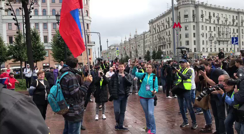Good point: None of the many videos today shows the slightest violence from the protesters. So far, 685 people have been arrested in Moscow today, the fourth weekend of protests against the stolen Moscow City Duma elections on Sep 8.