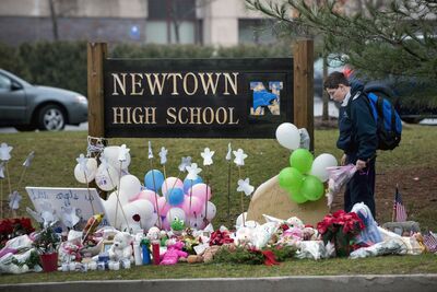 Makeshift memorial for the victims of the Newtown elementary school shooting.