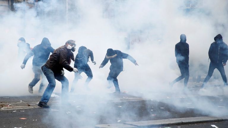 Respond to of 1577030 OOPS! Who is laughing at whom? Macron pension reform: France paralysed by biggest strike in years BBC News, by Staff Original Article France's largest nationwide strike in years has severely disrupted schools and transport. Workers are angry about planned pension reforms that would see them retiring later or facing reduced payouts. More than 800,000 workers from a wide range of professions demonstrated against the changes. Some cities saw clashes between protesters and police. President Emmanuel Macron wants to introduce a universal points-based pension system. More than 800,000 people had joined demonstrations in more than 100 cities across France, the interior ministry said. The CGT union said 1.5m people had turned out, including 250,000 in Paris. The CGT also said workers had blocked seven of the country's eight oil refineries, potentially causing fuel shortages if the strike continues. In Paris, popular tourist sites including the Eiffel Tower, the Musée d'Orsay and the Palace of Versailles were shut for the day.How has transport been affected? *Some 90% of high-speed TGV and inter-city trains were cancelled *In Paris, just five of the city's 16 metro lines were running *Train operators Eurostar and Thalys cancelled at least half their services linking Paris with London and Brussels. * Eurostar will operate a reduced timetable until 10 December *Hundreds of flights were cancelled *Air France cancelled 30% of internal flights and 10% of short-haul international flights amid walkouts by air traffic controllers *Low-cost carrier EasyJet cancelled 223 domestic and short-haul international flights, and warned passengers to expect delays. *Meanwhile the Extinction Rebellion group said it had sabotaged thousands of e-scooters by painting over the QR codes that smartphone users scan to unlock the vehicles.