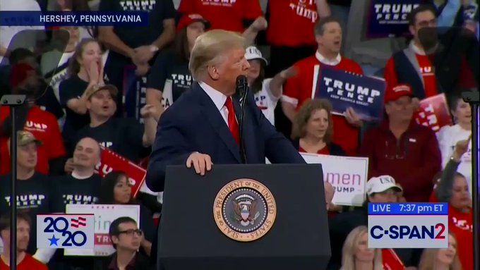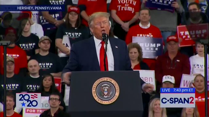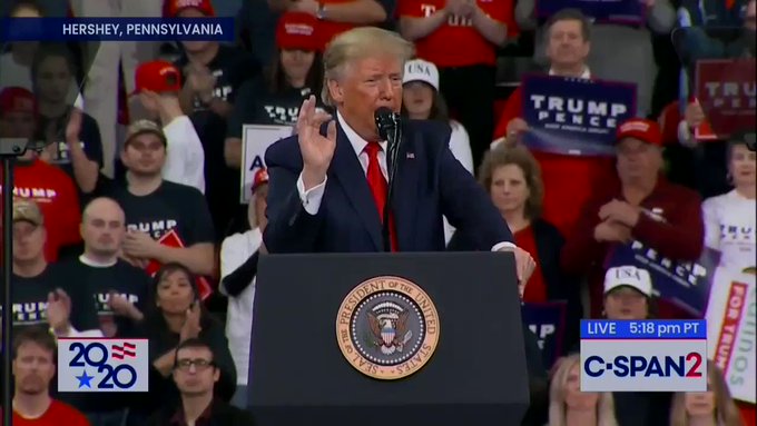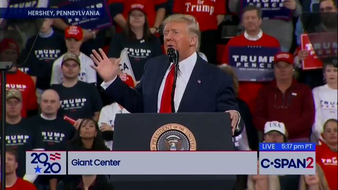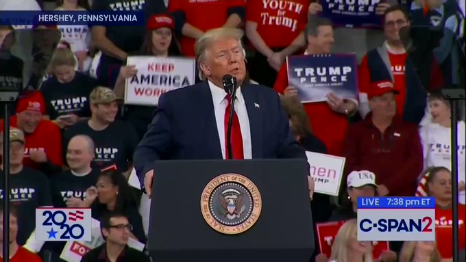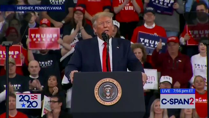 As House Democrats prepare to vote on articles of impeachment related to his alleged abuse of power and obstruction of Congress, President Donald Trump gave a speech at a campaign rally on Tuesday night in Hershey, Pennsylvania, that highlighted many of the reasons people feel that the country will struggle to withstand another year of this — even in the likely event that the Senate doesn’t end up removing him from office.