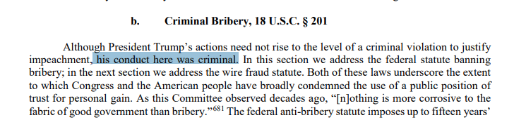 "multiple federal crimes" in the course of his conduct toward Ukraine, including bribery and wire fraud.