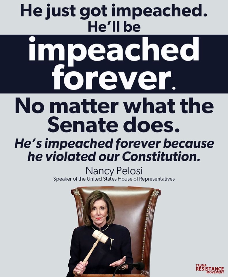 Nancy could just hold off on passing the articles to the Senate until it turns Blue in 2021. That’s assuming the criminal orange monster mobster FatRump somehow gets re-elected (no doubt by cheating and rigging the election)