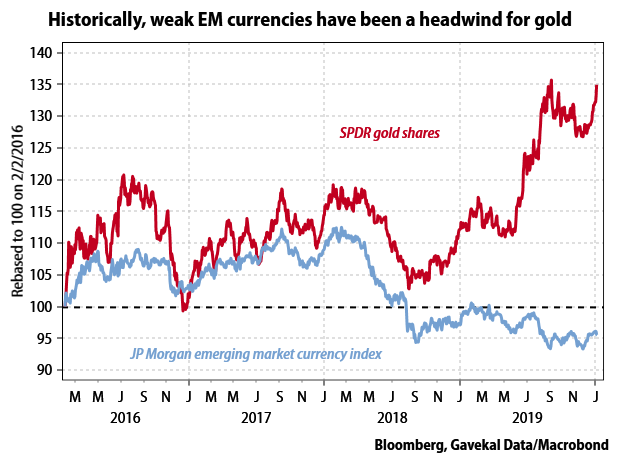 This may be the first—uncomfortable—explanation for the weakness of the gold price over the closing months of 2019. Even though the US Federal Reserve launched a new round of quantitative easing, emerging market currencies continued to make new lows, reflecting the aggressive monetary and fiscal stimulus also taking place across the emerging world. And weak emerging market currencies are a genuine headwind for the gold price.