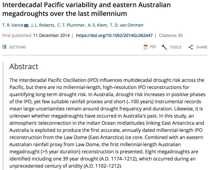 Eight megadroughts are identified in eastern Australia including one 39 year drought (A.D. 1174–1212), which occurred during an unprecedented century of aridity (A.D. 1102–1212). t.co