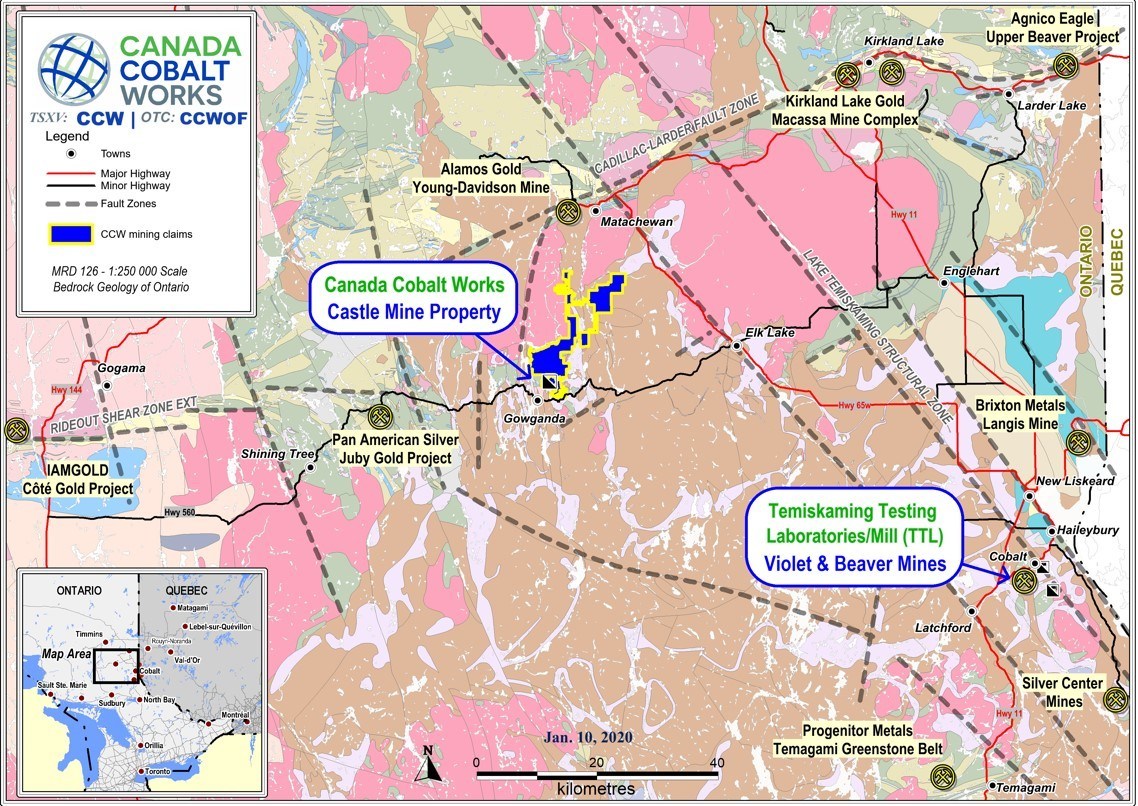 Please visit the Canada Cobalt web site at CanadaCobaltWorks.com for an updated location/geological map for the Castle Property, also included in this news release.