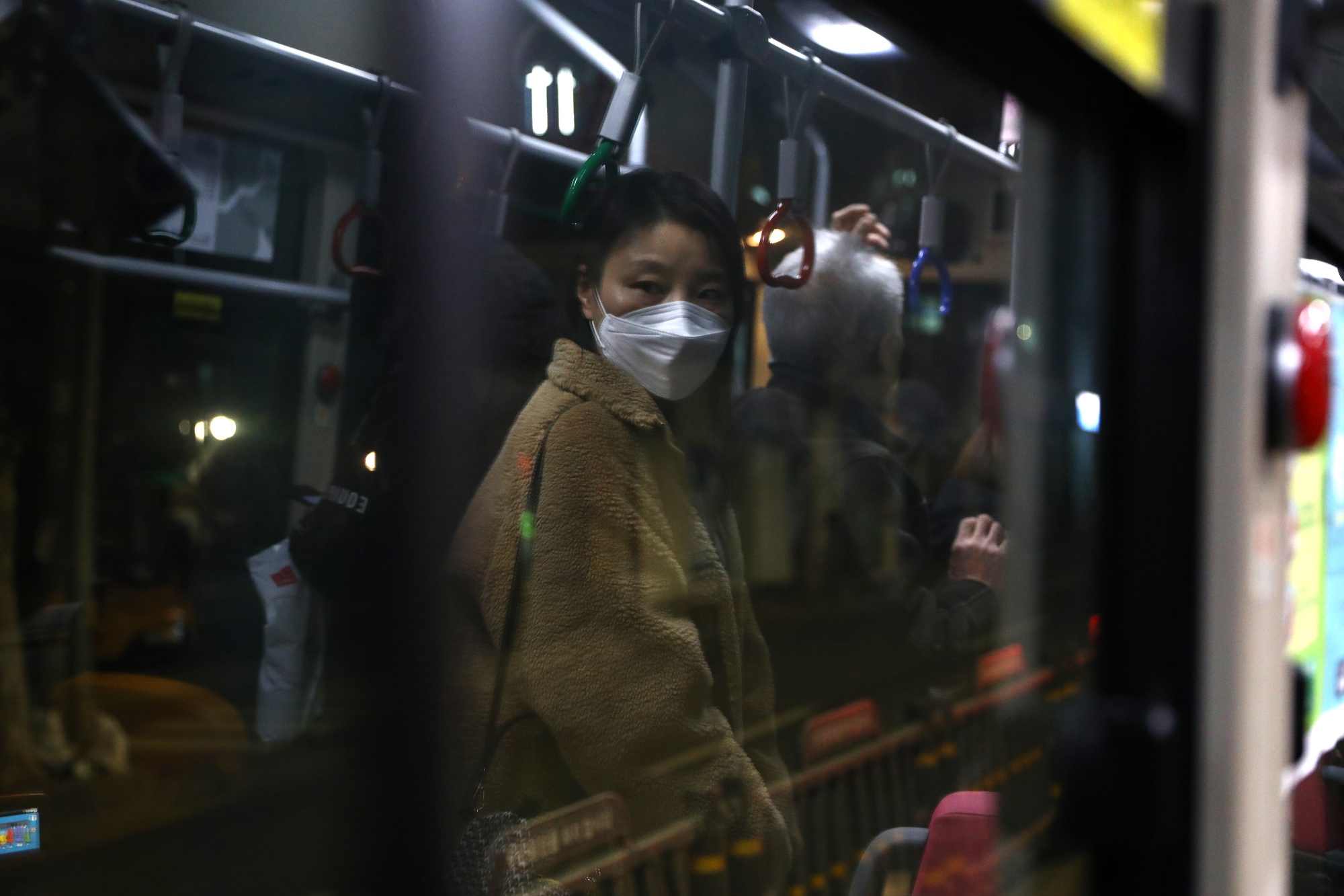 A passenger wears a protective mask on a bus in Seoul on Feb. 22. Photographer: Chung Sung-Jun/Getty ImagesSouth Korea raised the country’s infectious-disease alert to the highest level after the number of cases there soared by several hundred within days.