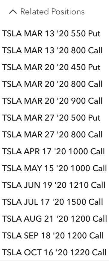 My short positions related to the TSLA Call Jan 15 ‘21 Call 1,880 are (March) adjusted as follows, figuring the kill-zone to be w/i 500 - 900