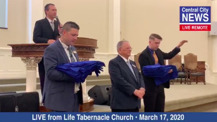 To: Bonefish who wrote (1213453 ) 3/27/2020 5:24:51 AM From: pocotrader Read Replies (1) | Respond to of 1578013 Pentecostal Pastor Won’t Stop Church for COVID-19 What if congregations don’t comply with public health orders? We’re about to find out. Daniel Silliman March 19, 2020 5:20 PM /Health Technology Lecrae Donald Trump Top Stories Churches Reconsider Drive-In Worship After COVID-19 Diagnosis, Sandi Patty Urges Christians to Take Pandemic Seriously Iran Releases a Third of Christian Prisoners Due to Coronavirus Concerns When God Closes a Church Door, He Opens a Browser Window Gleanings Pentecostal Pastor Won’t Stop Church for COVID-19 What if congregations don’t comply with public health orders? We’re about to find out. Daniel Silliman March 19, 2020 5:20 PM Image: Screen grab from Central City News / Facebook A pastor in Baton Rouge, Louisiana, says he will defy government orders intended to prevent the spread of COVID-19 The Oneness Pentecostal congregation met on Tuesday, despite the declaration of a state-wide public health emergency banning gatherings of 50 or more people. Life Tabernacle Church plans to meet again on Sunday, setting up a possible legal clash between religious liberty protections and the state’s authority to respond to a pandemic. “The virus, we believe, is politically motivated,” pastor Tony Spell told CNN affiliate WAFB. “We hold our religious rights dear, and we are going to assemble no matter what someone says.” The church typically draws more than 1,000 attendees on Sunday. About 300 gathered Tuesday night and the pastor posted a 25-minute clip of the service from Central City News on his Facebook page. Ministers passed out anointed handkerchiefs and Spell preached about fear. “This is an extreme test brought on us by the spirit of antichrist and the mystery of lawlessness,” he told the congregation. “What good is the church in an hour of peril if the the church craters and caves in to the fears and the spirits of torment in our society?”