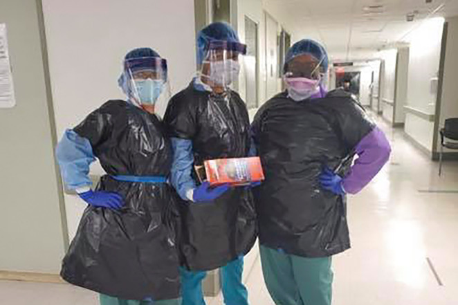 YEP...the hospital involved was saying that all morning on FOX. People were highly upset that the hospital was making them work unprotected in green garbage bags. Great modeling job though with the big smiles.