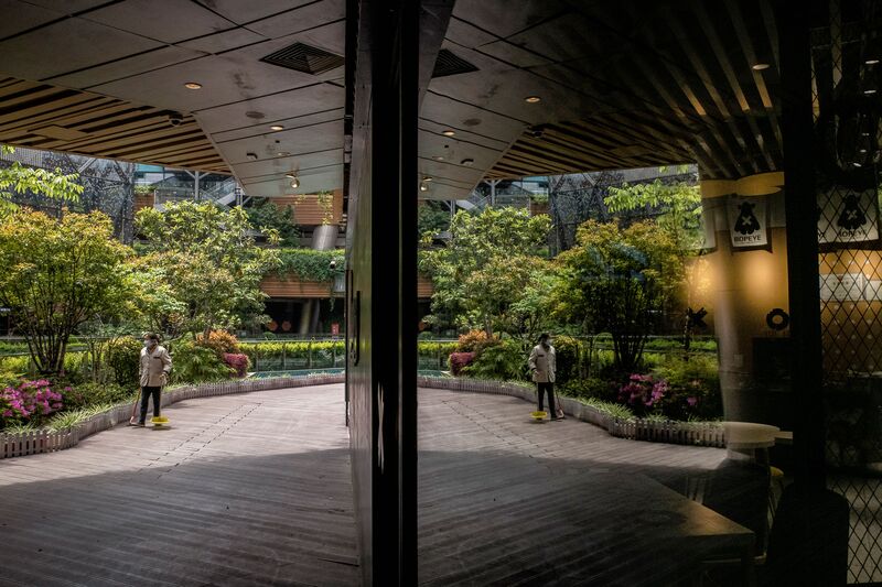 A cleaning lady at the deserted mall. PHOTOGRAPHER: GILLES SABRIE FOR BLOOMBERG BUSINESSWEEK Xiong was already under pressure from rents that have doubled over the past five years, reducing his profit last year by 3 million yuan. This year he expects to lose 2 million more because of the shutdown. The total operating cost for all of Xiong’s restaurants is about 50,000 yuan a day, he says, of which about 23,000 yuan is rent. He’s had to let at least 40 employees go.