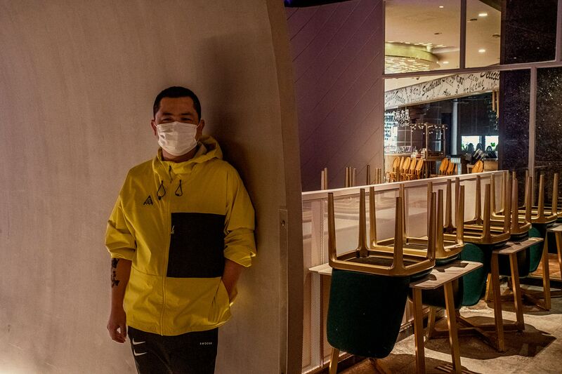 A shut-down restaurant at the same mall. PHOTOGRAPHER: GILLES SABRIE FOR BLOOMBERG BUSINESSWEEK It’s a cycle of stress and worry that hasn’t let up for Xiong since Jan. 23, when his phone started buzzing at 2 a.m. with the news: Wuhan would be locked down in eight hours to contain the deadly virus. While 5 million people left before the city was cut off at 10 a.m., Xiong and his family never considered doing so. He’s from Wuhan, and the very existence of his business was at risk. “I knew restaurants would be the most heavily affected,” he says. “I also worried about our workers’ health.”