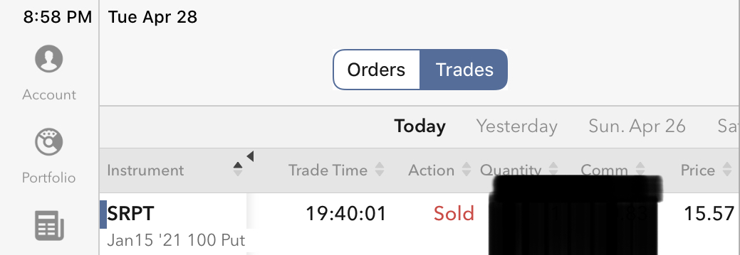 This night someone paid me $ 15.57 per share for the promise I made to be willing to buy SRPT at $ 100 per share between now and end-day 15th January 2021. Shall sell more Puts as and when and if there be a wobble of the overall market.