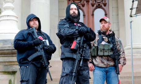 Sarah Anthony’s escort. The lawmaker said her experience during the rightwing protest was ‘one of the most unnerving feelings I’ve ever felt in my life’. Photograph: Courtesy of Michael Lynn Jr./Merica20tolife A black lawmaker came to Michigan’s capitol with an escort of armed black citizens on Wednesday, days after white protesters with guns staged a volatile protest inside the state house, comparing the Democratic governor’s public health orders to “tyranny”.