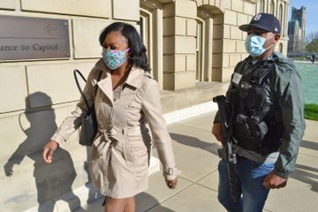 Despite the armed escort, Anthony said she was “actively working to prohibit open carry” of firearms in the state capitol, which is currently legal.