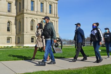 One of Anthony’s constituents, a black firefighter, organized Wednesday’s capitol escort. While early reports focused on three black men with large rifles escorting Anthony, there were six participants, including two women, and some of them were armed with handguns, Lynn said. Five of the participants are black and one is Hispanic. Michael Lynn Jr, a Lansing resident, said he was frustrated to see his legislator being violently intimidated in her workplace. He said the escort was the first time he had ever chosen to openly carry his AR-15 rifle.