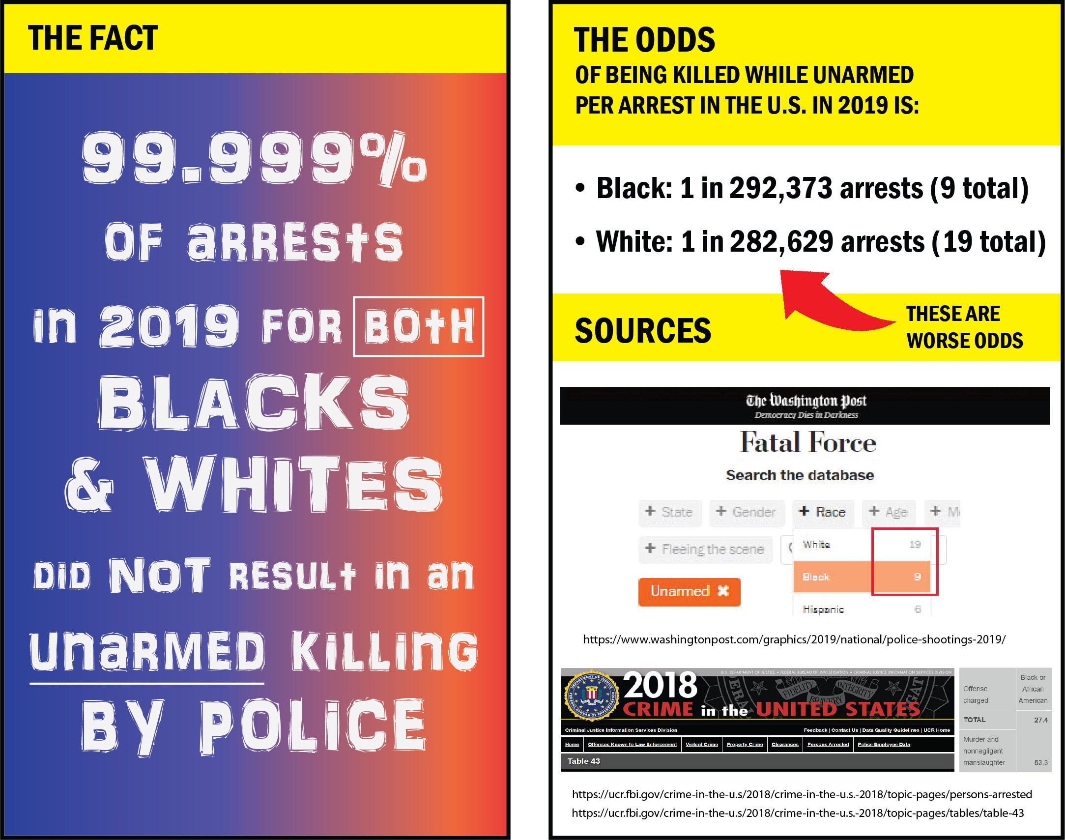 Here's another set of facts for you. If you are white and unarmed, you have a higher probability of being killed during your arrest than a black person. Again, the data does not support your narrative.