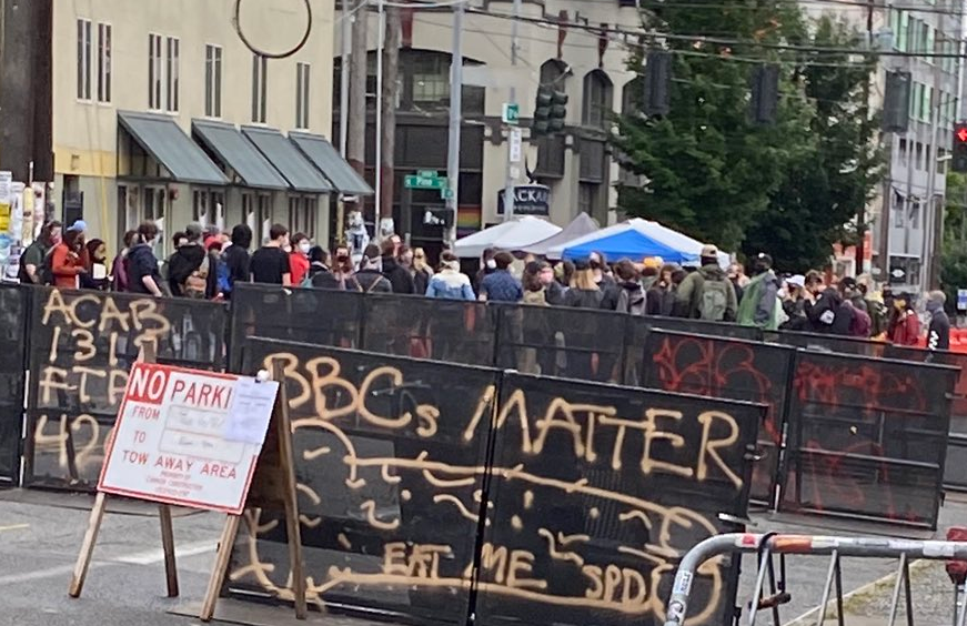 Read Replies (4) | Respond to of 1573640 Have you not seen the store and store looting and all the people killed or beaten to a pulp, including the white lady defending her store? Also, what about Antifa literally taking over the East Precinct and an Autonomous Zone being set up by them in Seattle? Are these peaceful protests? This is an insurrection. How much more of this are peaceful, law abiding citizens supposed to tolerate? -------Seattle Protesters Establish "Autonomous Zone" After Police, National Guard Pull Out What began as an attempt by Seattle Police to ease tensions after a week of protests by retreating from the Capitol Hill neighborhood has resulted in the establishment of the so-called " Capitol Hill Autonomous Zone" - a six-block section of town which Antifa and other activists have occupied, setting up barricades and claiming the area near the Seattle PD East Precinct as theirs.