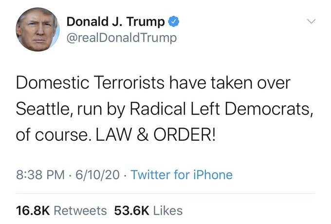 As far as the claim that the burnings and looting having stopped, that's also not true. We have an unfolding insurrection in Seattle where some liberal Nazis are shooting the finger at the Governor and the American people. Will the liberal governor do anything to regain control of his city? Not likely. Liberal governors and mayors have proven to be very weak kneed during these riots.