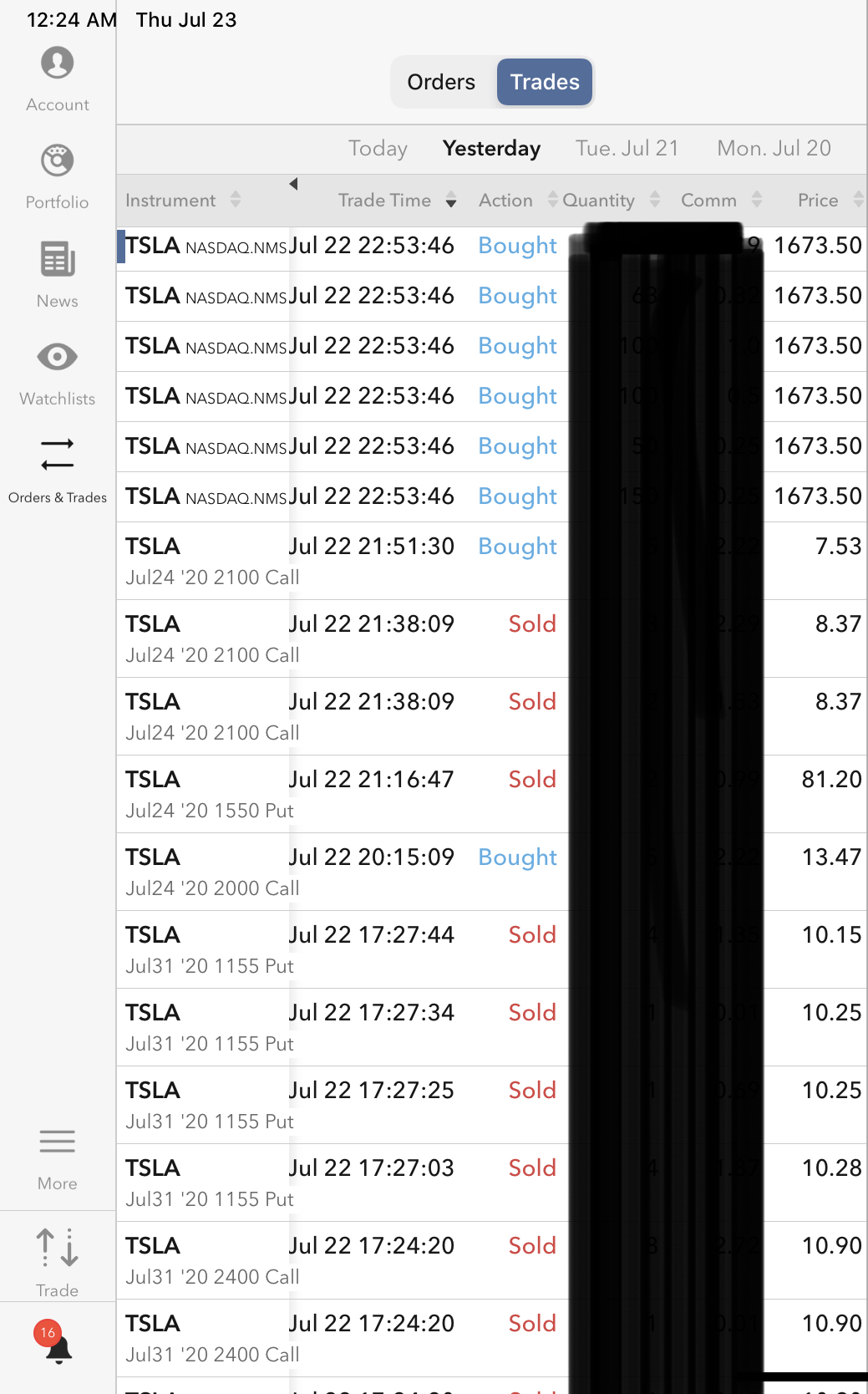 To: carranza2 who wrote (160460 ) 7/22/2020 7:03:26 PM From: TobagoJack Read Replies (1) | Respond to of 217868 Re <<roar tomorrow ... Hoping you are bailed out of your TSLA shorts >> The only shorts I had were shorted puts and shorted calls Message 32847365 , and the shorted calls are for strike 2,400 expiration 31st July, and to make doubly sure TSLA reaching that tag before 31st July does no harm, I did one after-hours trade and am now long TSLA. Tomorrow I should be able to (i) harvest the shorted puts expiration July 31st, and (ii) allow the shorted puts expiration 24th (Friday) to blowup my counter-party And depending on the fever, allow the shorted expiration 31st July Call 2,400 to again go naked by selling my after-hour acquired TSLA longs. So far every closed battle a money-maker. Bumper crop. The game is a game, and beats Macau. By the crowds bidding TSLA to a higher ledge makes for even better gaming going forward, every week, week after week, until not. Again, I believe I know where TSLA will end up, eventually, but remain agnostic on timing. Am hoping the best for Elon and TSLA in the meantime :0) I appreciate the fellow who bought TSLA calls strike 3500. He is doing the greater-good work. One decision to ponder before tomorrow market close, “what strike-price put to short for expiration 31st July series?” In the meantime I see gold is up in USA market whilst I was doing whatever on the TSLA front. Given such 1,900 might be hit Asia trading hour, and fall back by the time London closes and NY opens again, meaning I ought to be able to sell 2840.HK in HK, buy GBS in London, and sell GLD in NY, if so dictated, and keep doing it until they all hit the same highs; a working theory. For many, the volatility is a risk; to me, volatility is a friend. Re <<luck and skill >> ... yes, both good. Being able to read tomorrow’s WSJ today is best :0)