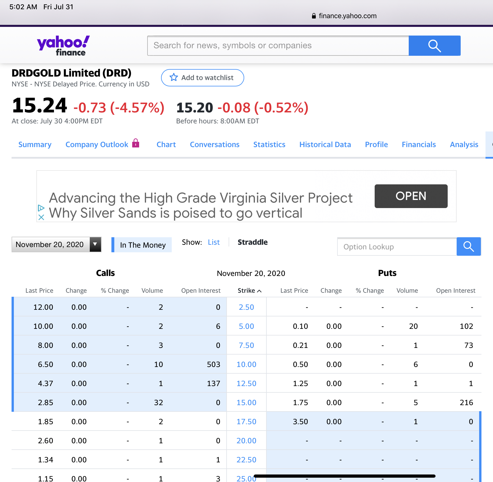 What youngster Usuomom may be missing is that DRD bank pays 38% per quarter (buy the shares at ~15.00 and short the call and put options at-the-money 15, expiration November 20th