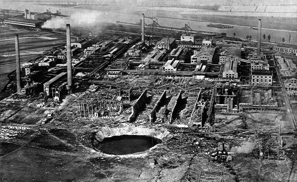 Crater left after the ammonium nitrate blast at the BASF plant at Oppau in 1921 (Photo by ullstein ... [+]