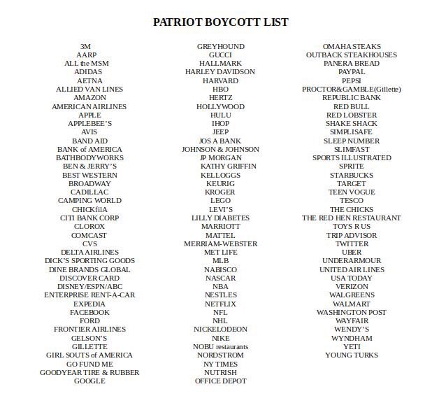 Trumpers Boycott List: