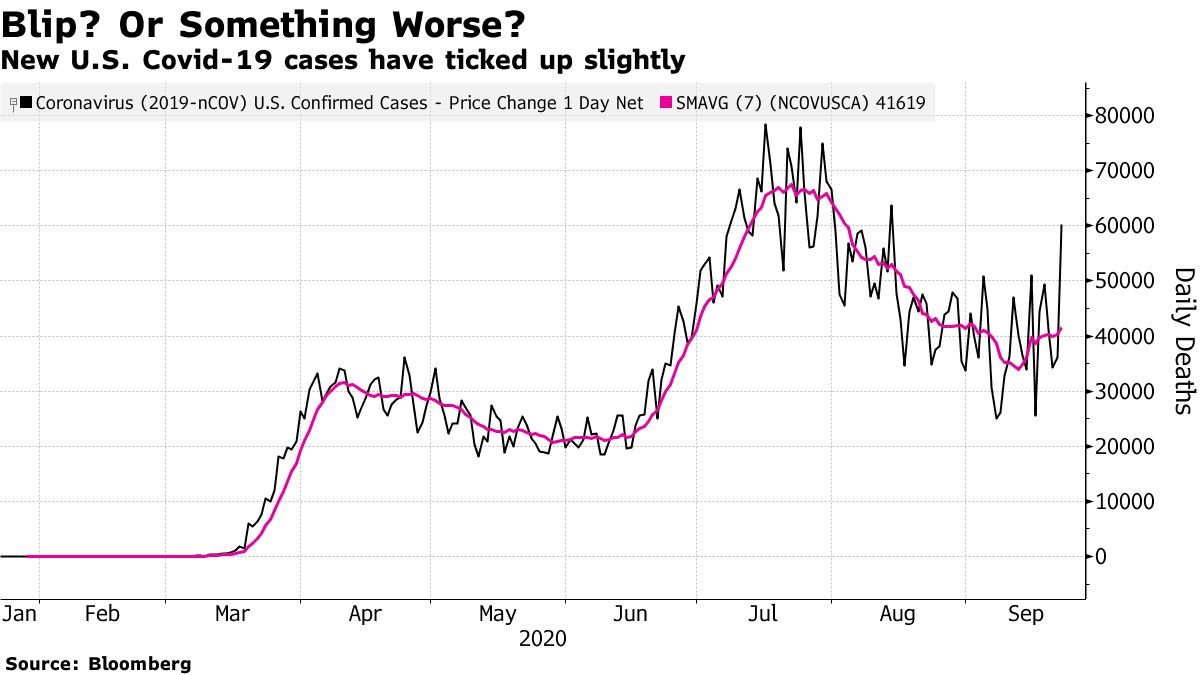 Re <<2020 -- just wow! >> good that you and family well. super. re 2020, we are not done yet by many measures, and so perhaps more wows baked in as well as going into pipe line, like machine cannon munitions, ready or not Background music recommended by the article VIDEO bloomberg.com This Bout of Stock Market Angst Looks Much Darker We’ve gone from correcting excess to questioning the basic assumptions of a pandemic recovery that underpinned the rally. John Authers 24 September 2020, 12:24 GMT+8 The death of Ruth Bader Ginsburg has compounded political uncertainty. Photographer: Stefani Reynolds/Bloomberg John Authers is a senior editor for markets. Before Bloomberg, he spent 29 years with the Financial Times, where he was head of the Lex Column and chief markets commentator. He is the author of “The Fearful Rise of Markets” and other books. Read more opinion Follow @johnauthers on Twitter To get John Authers' newsletter delivered directly to your inbox, sign up here . “All the Things We Can Think Of” The stock market sold off again Wednesday. It has done so more often than not this month. But it would be a mistake to draw a line between the latest bout of negativity and those that preceded it. Earlier sell-offs involved an attempt to correct obviously excessive prices in some of the dominant tech names. The latest sell-off was about rethinking the basic assumption that the U.S. and world economies can continue to recover, buoyed by continuing Fed largesse. This wasn’t so much “we took things too far” as “we might have taken things in completely the wrong direction.” It is difficult to get through one of these newsletters without mentioning the FANGs these days, so I’ll try to make this the first and last reference. The NYSE Fang+ index barely underperformed the equal-weighted S&P 500 index Wednesday, and has gained more than 5% on the average stock over the last two weeks. This was true despite Tesla Inc.’s underwhelming “battery day” giving everyone an excuse to sell. At this point, the downdraft in U.S. stocks isn’t about the FANGs. The tell as to what is worrying people came from the metals market. Gold has enjoyed a great bull run this year, up to and including record highs. That generally signals anxiety. Industrial metals recently completed a recovery that suggested newfound optimism for a cyclical upturn. Both precious and industrial metals have now changed course: Why is gold falling? Put one way, the inverse relationship with real yields continues. When real yields rise then gold, which pays no income, can be expected to fall. This is true even if real yields are rising from deeply negative territory. To explain the intuition behind this, gold is widely regarded as a hedge against central banking irresponsibility. Recent speculation is that the Fed may not print money and cut rates with quite the gay abandon that had been assumed. This may or may not be good news for the U.S. economy, but it raises real yields and for investors in gold and in risk assets, who might benefit from currency debasement, it is definitely bad news. It is only a month since the Fed unveiled a historic change in its monetary policy strategy, suggesting that it will be prepared to tolerate far more inflation in future. It is only a week since Chairman Jerome Powell’s press conference confirmed that the members of the Federal Open Market Committee collectively don’t expect to raise rates for at least another three years. And yet real yields have been rising from their previous historic lows ever since that press conference. They have now gained 19 basis points from their low earlier this month, while gold has sold off sharply and has dropped below the $2,000 level that caused such excitement in August: I argued last week that markets would soon realize it would have been greedy to expect the Fed to be any more dovish. That call isn’t looking good, thus far. What has gone wrong? I think two main issues are involved. First, there is the death of Supreme Court Justice Ruth Bader Ginsburg. The passing of the liberal icon has no direct effect on markets, but the political conflict it has engendered does create much greater uncertainty over whether any kind of fiscal stimulus can be thrashed out any time soon. Now, members of Congress have to worry about re-election and a historically divisive court appointment. They may have neither the time nor the attention span to agree on a deal to tide people and businesses through the pandemic. Testifying to Congress this week, Powell tried to make clear that elected politicians needed to come through with more generous fiscal policy. In this, he was simply doing his job and prodding them into taking action he considered necessary. But when he said that some Fed emergency programs “require the support of the Treasury Department,” that the Fed’s credit facilities were no more than a “backstop” and that for many “a loan that could be difficult to repay might not be the answer,” he rammed home to investors that even the Fed is not omnipotent and that “direct fiscal support may be needed.” Another concern from the Powell testimony seems to have come from taking his remarks out of context. Asked about the Fed’s Main Street lending program, whose take-up has been somewhat disappointing, he replied Tuesday that “I unfortunately think there’s not much more we can do.” On Wednesday, he said the Fed had “done basically all the things we can think of.” In context, he was plainly referring to the specifics of stimulating lending to Main Street. But some heard the Fed chairman say he had already done “all the things we can think of” and took fright. This latest sell-off appears, then, to recognize that the horrible state of U.S. politics could get in the way of an economic recovery, while also acknowledging that the market remains dependent on extended central banking largesse. Corona Returns There is one final is