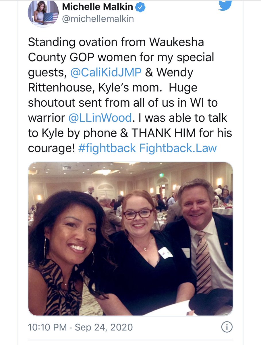 Shot. Chaser. 1. Featured speaker at Waukesha GOP women’s event: Alt right icon Michelle Malkin. 2.Standing ovation for mother of Kyle Rittenhouse, the 17 year old who shot and killed two people in Kenosha