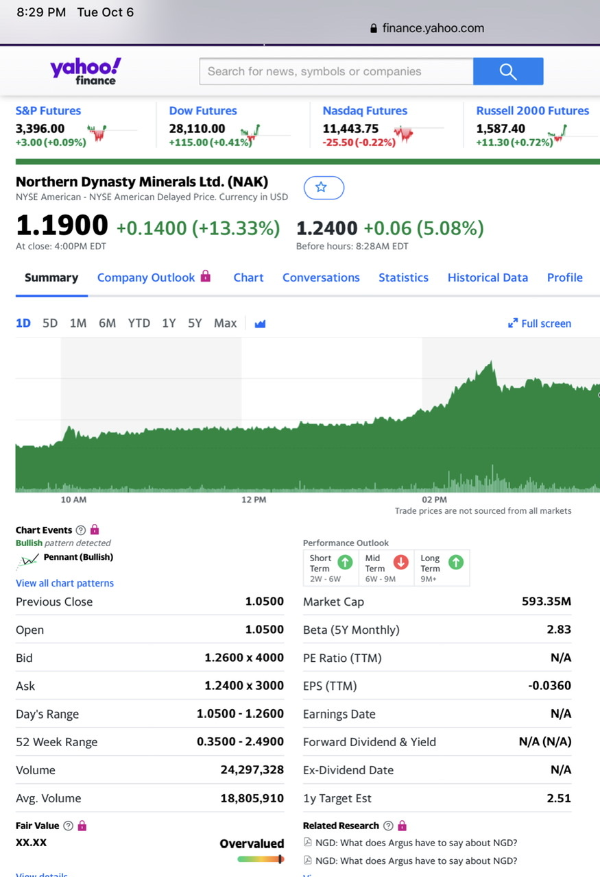 Perhaps NAK is a leading indicator to Trump’s good health?