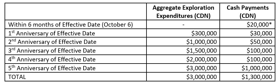 Under the terms of the Agreement, Pacific Imperial can earn a 100% interest in the TREK 31 project by completing the following:
