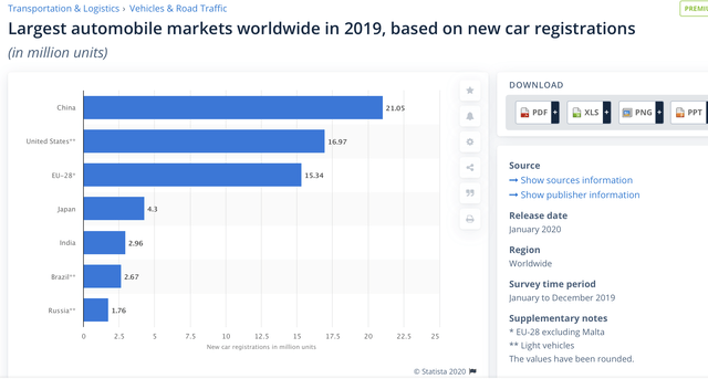 The illustration from Statista for regional markets in 2019 shows the increasing importance of Asian auto sales: