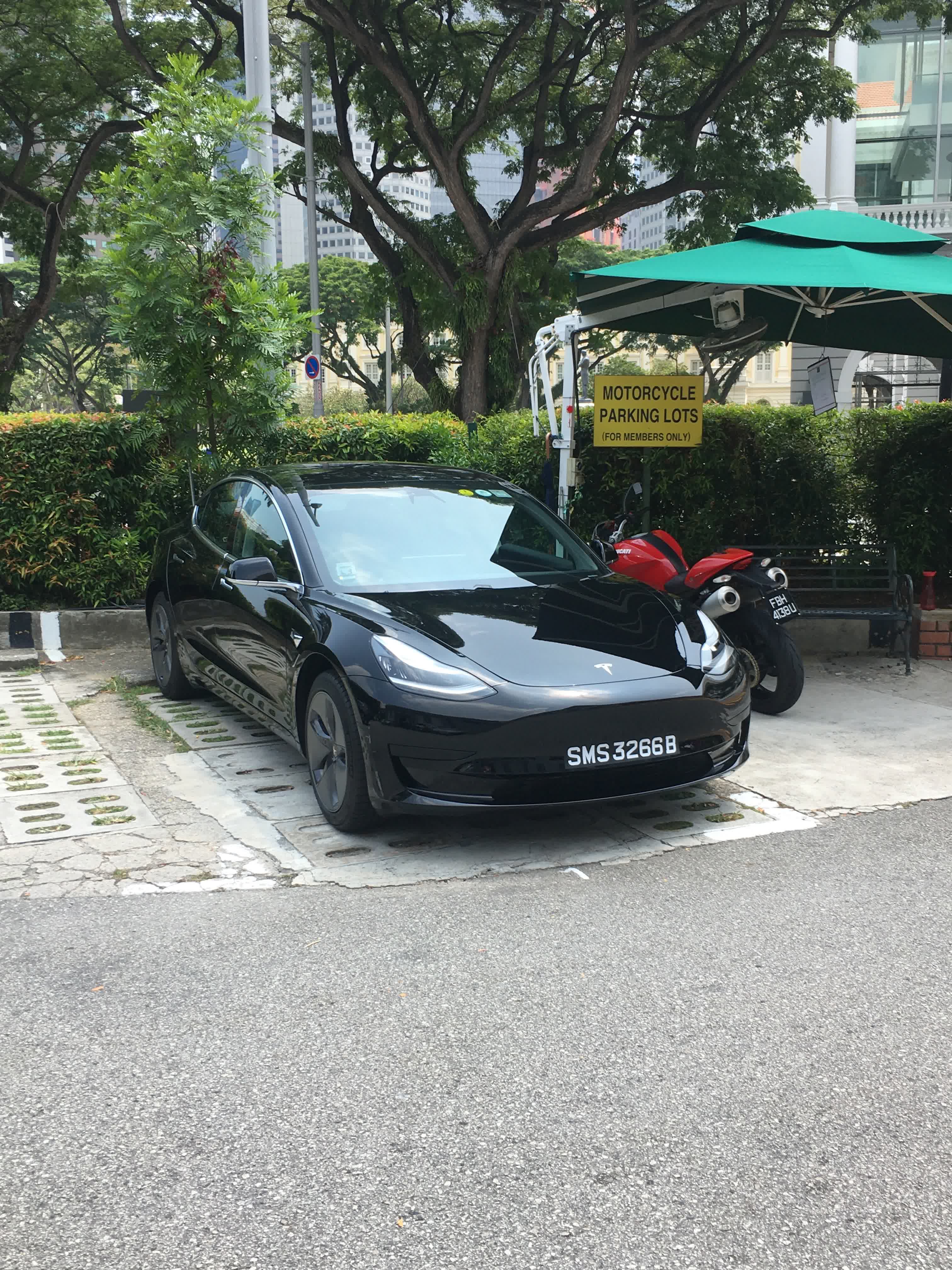 SingaporeThe affluent island state has not historically been a friend to EVs. Out of 628,000 cars on the road, about 1,100 are EVs. There are thought to be about 30 Teslas in the country. I have pictured one below at a Singapore sports club:
