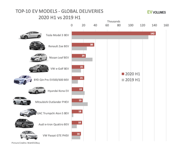 Figures from EVVolumes.com showed how dominant the Model 3 was all around the world in the first half of the year. This is illustrated below: