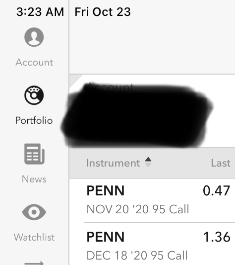 Added to naked short call against David’s affiliate company PENN, December wager, just to sate the need for fidget satisfaction