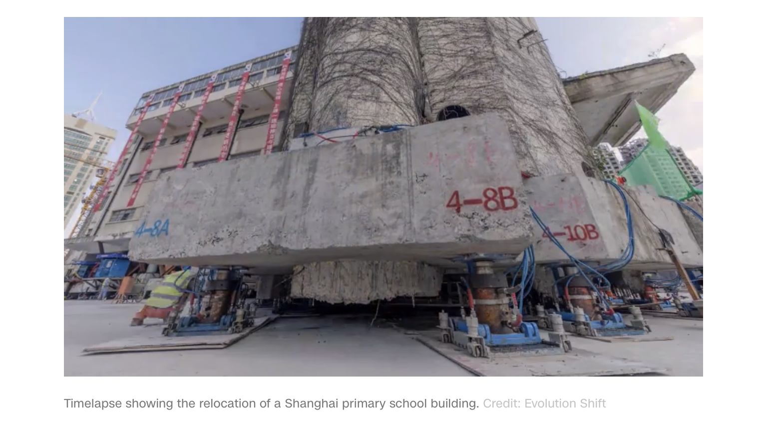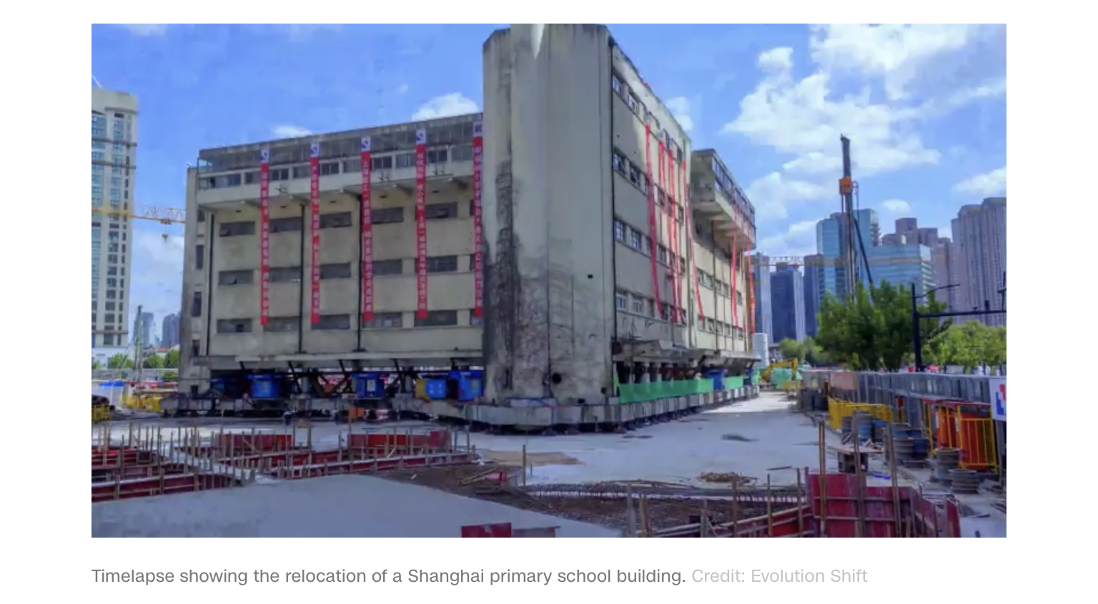 Timelapse showing the relocation of a Shanghai primary school building.Credit: Evolution Shift